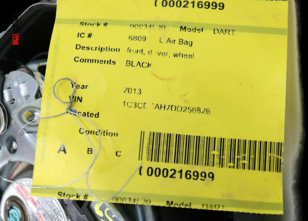 2013-2016 Dodge Dart Driver Side Steering Wheel Air Bag Black 34520