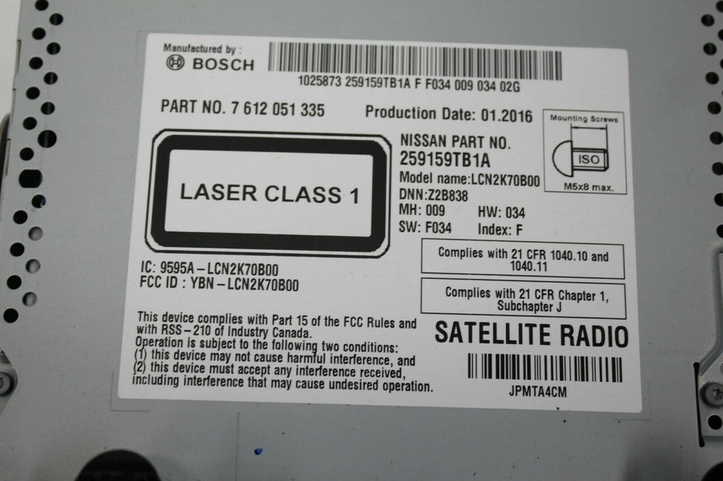 2013-2017 Nissan Rogue Stereo Radio Navigation Camera Cd Player 25915 9TB1A