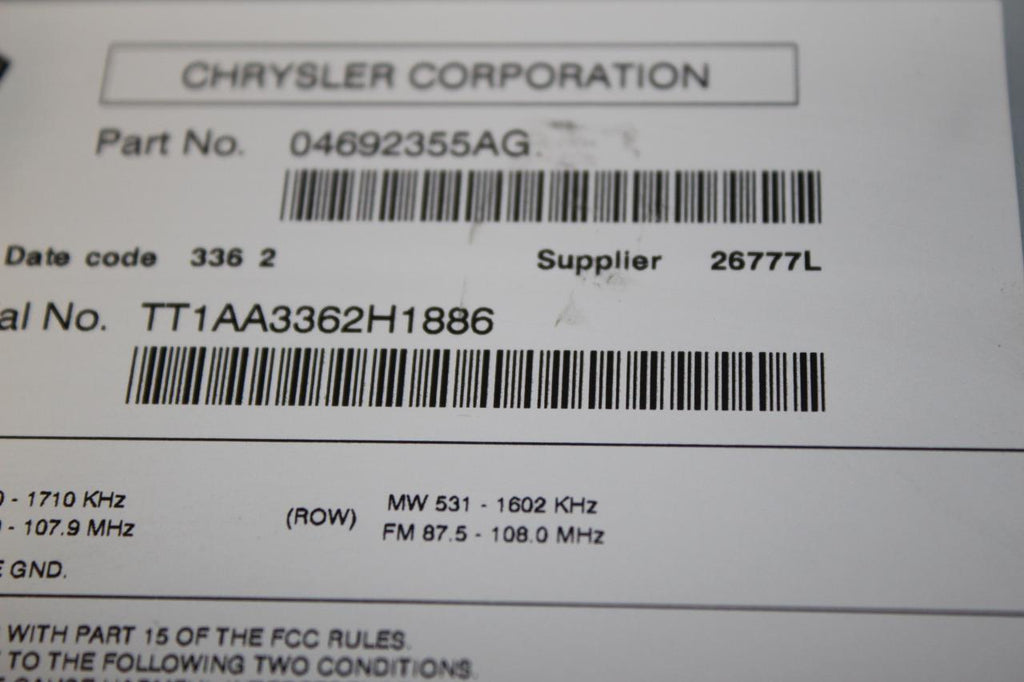 2013 DODGE DART RADIO STEREO CD PLAYER 04692355AG