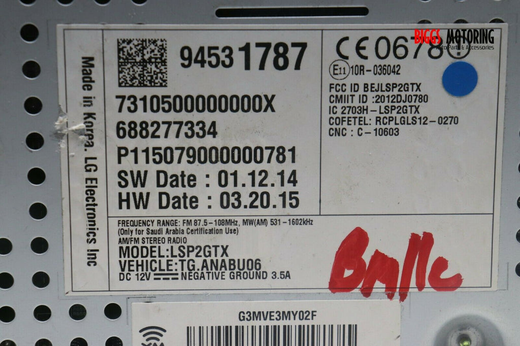 2015-2016 Chevy Trax MyLink Radio Receiver Touch Display Screen 94531787