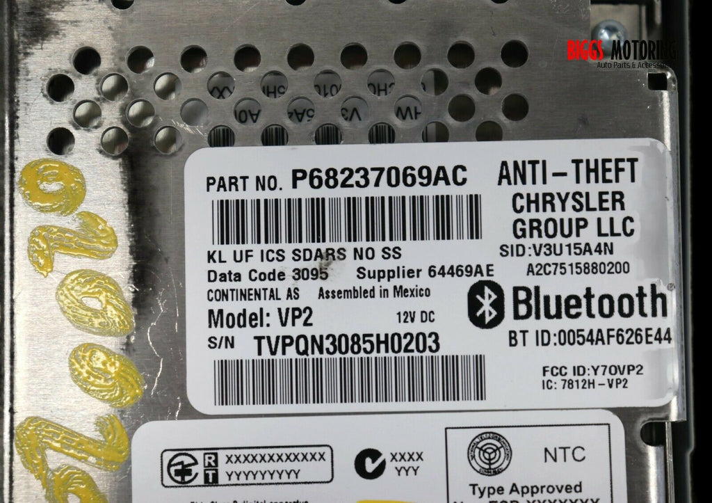 2015-2017 Chrysler 200 Bluetooth Satellite Radio Display Screen P68237069AC