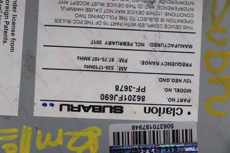 2015-2018 Subaru Crosstek Impreza Radio Touch Display Screen 86201 FJ690