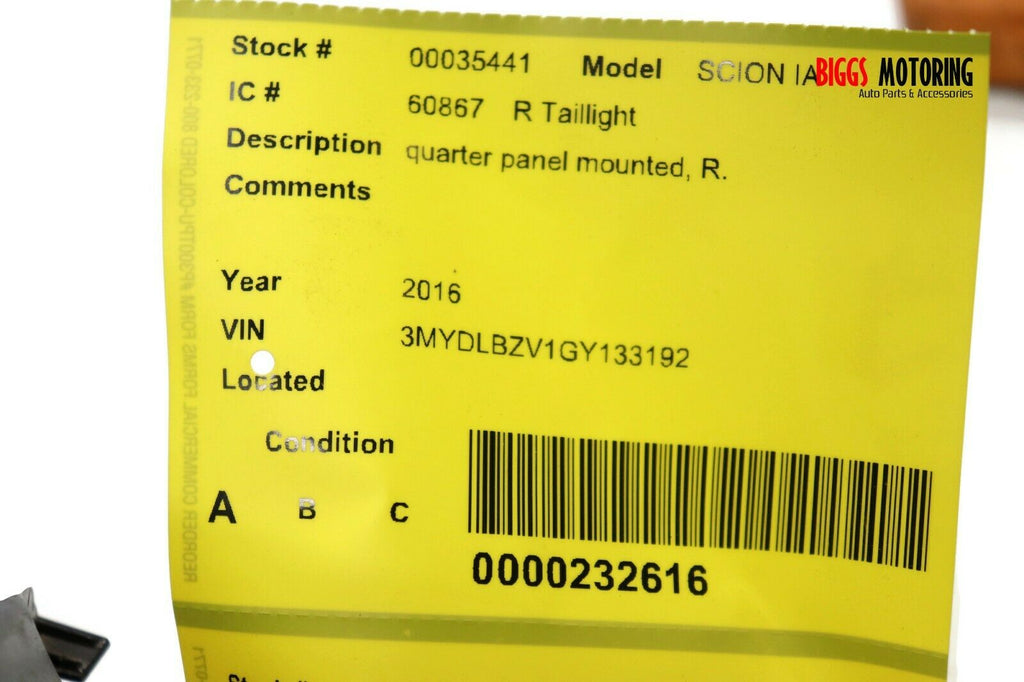 2016-2018 Scion IA Passenger Right Side Rear Tail Light 35441