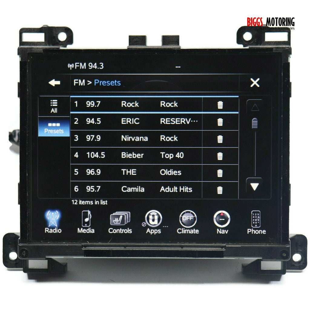 Fa ctory Oem Used Navigation Uconnect Radio Touch 8.4'' Display Screen Item is In Good Working Order, Ready To Be Installed... Bench Tested Item Will Show Signs Of Normal Used Wear, Minor Scratches, Scrapes, & Scuffs Etc See Pictures For Better Details